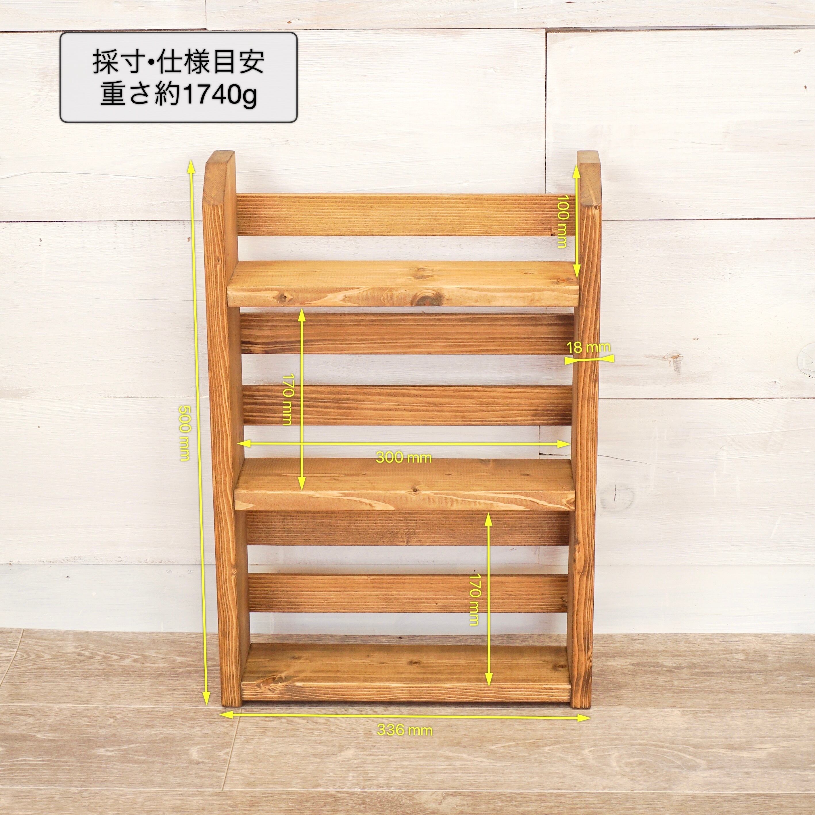 横幅約34センチのおしゃれでスリムな木のスパイスラック3段タイプです。