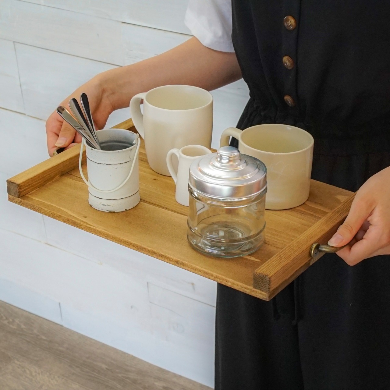 天然木目の質感、安全性にこだわり製作する木目カフェトレイです。