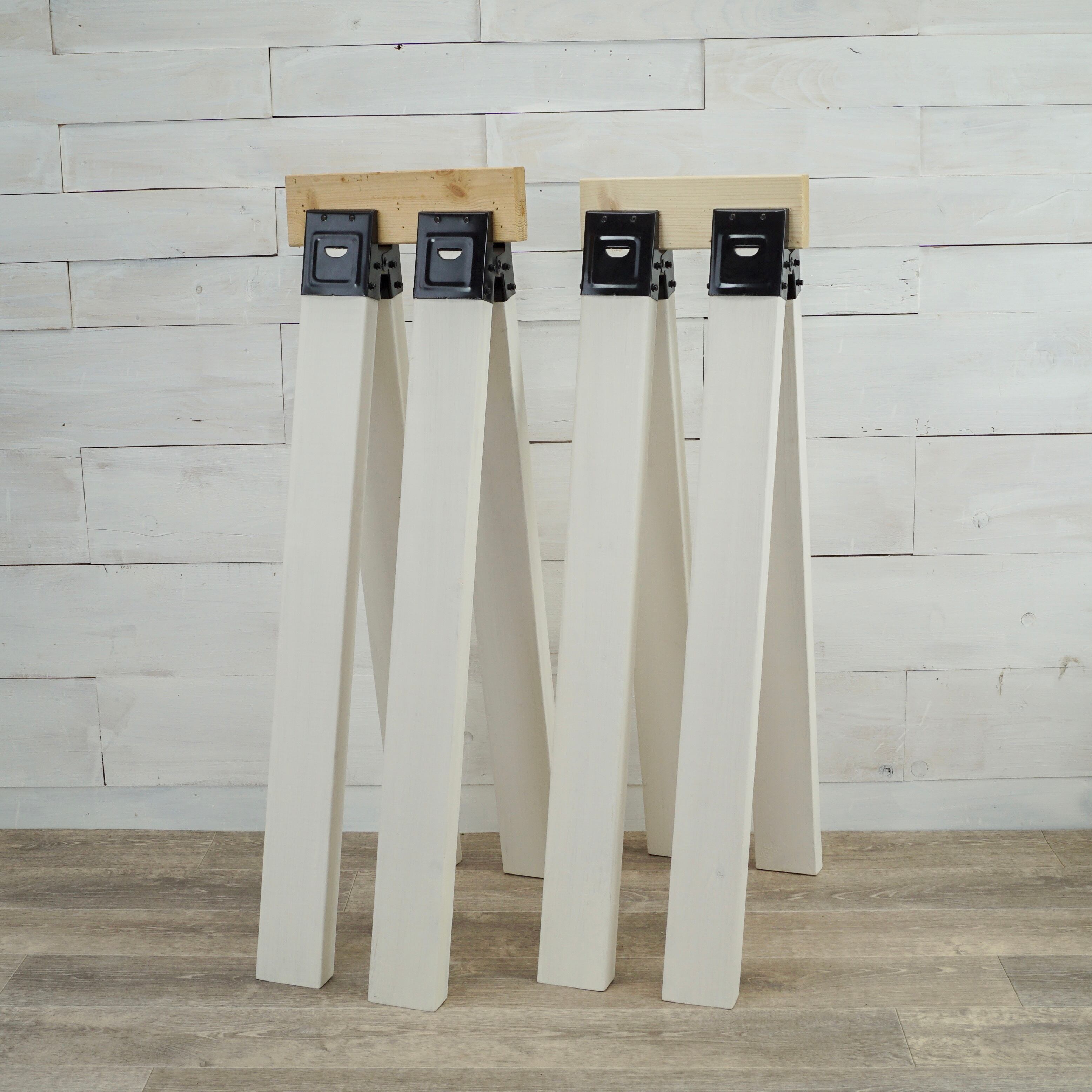 2×4のパイン無垢材で制作した木製のソーホース『白』の4脚セットです。
