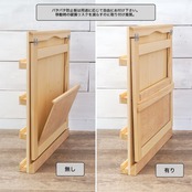 そんな事を叶える一品で柔らかい手触りが特徴の北海道産パイン無垢板が主材の4段の折り畳み什器です。