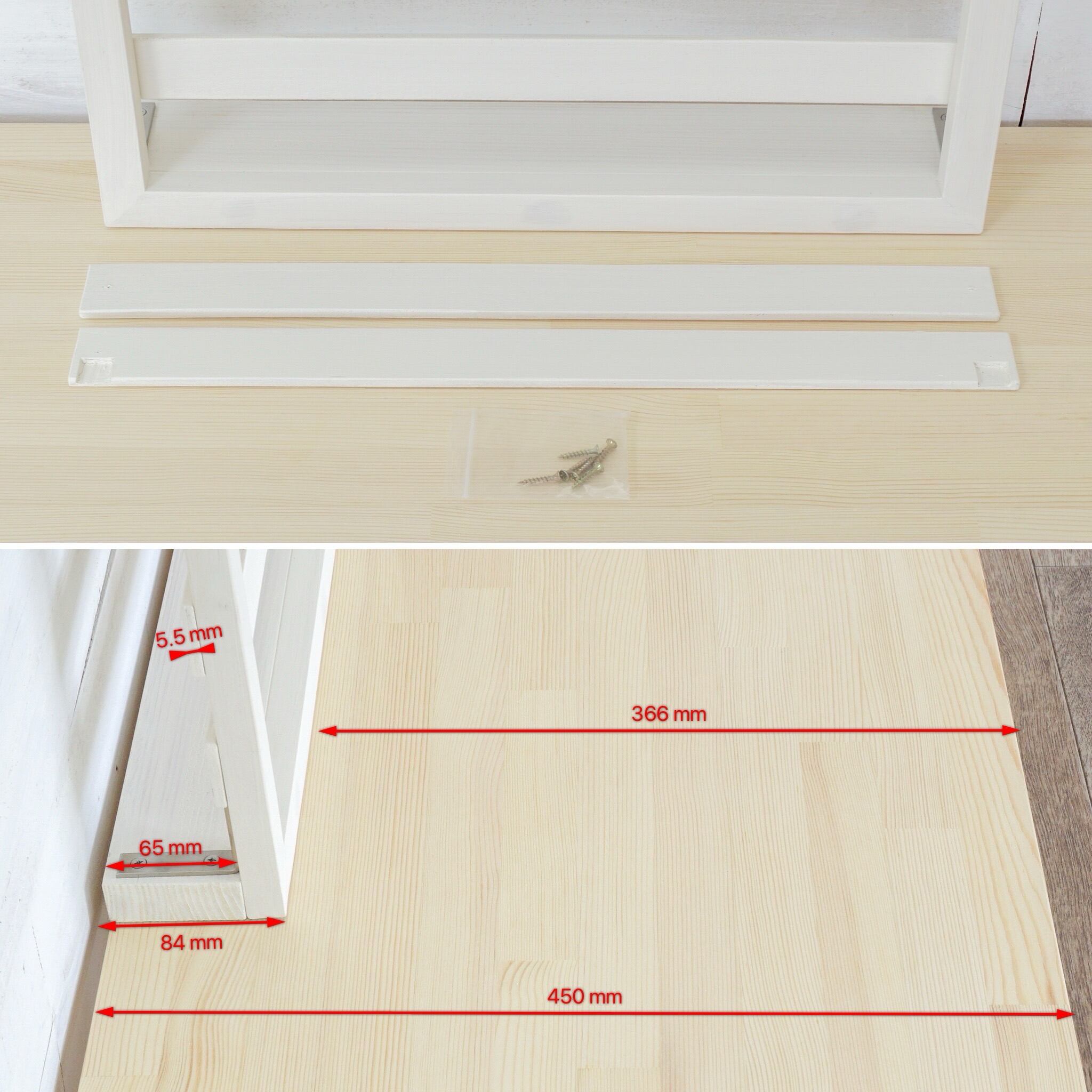 本体・中横板1枚・下横板1枚・ネジ6本