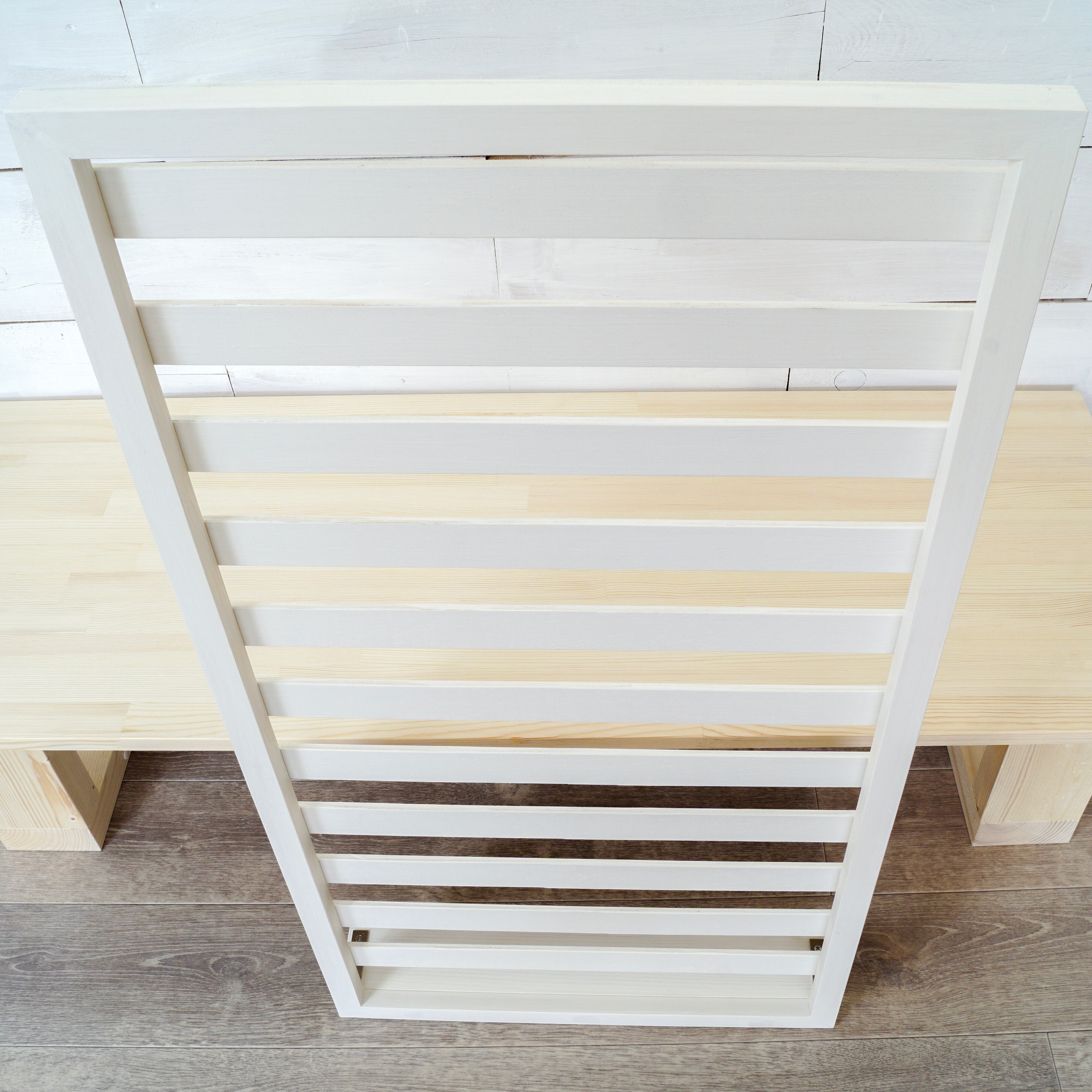 枠フレームはパイン材、横板は厚さ約5.5mmの合板。
